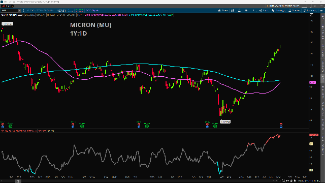 Micron stock has fallen since last year, down 8%. However, it is up 52% year-to-date. It slid last August after earnings and slid again after last quarter’s earnings. The stock has rallied since but is still below 52-week highs of $144.07.