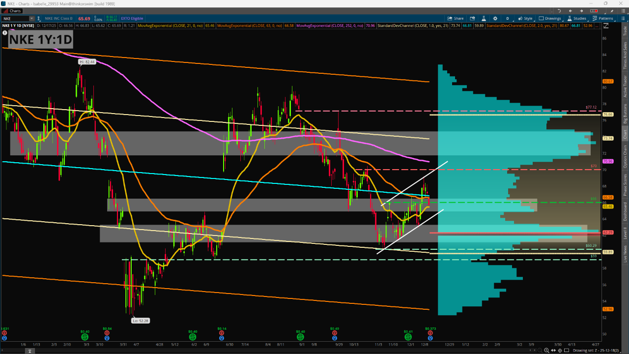 ContributorNike (NKE) will report earnings this afternoon, as the beleaguered footwear and athletic apparel company’s recent turnaround efforts have resulted in a recovery from its post-tariff news shock lows but have yet to materialize into a lasting uptrend.