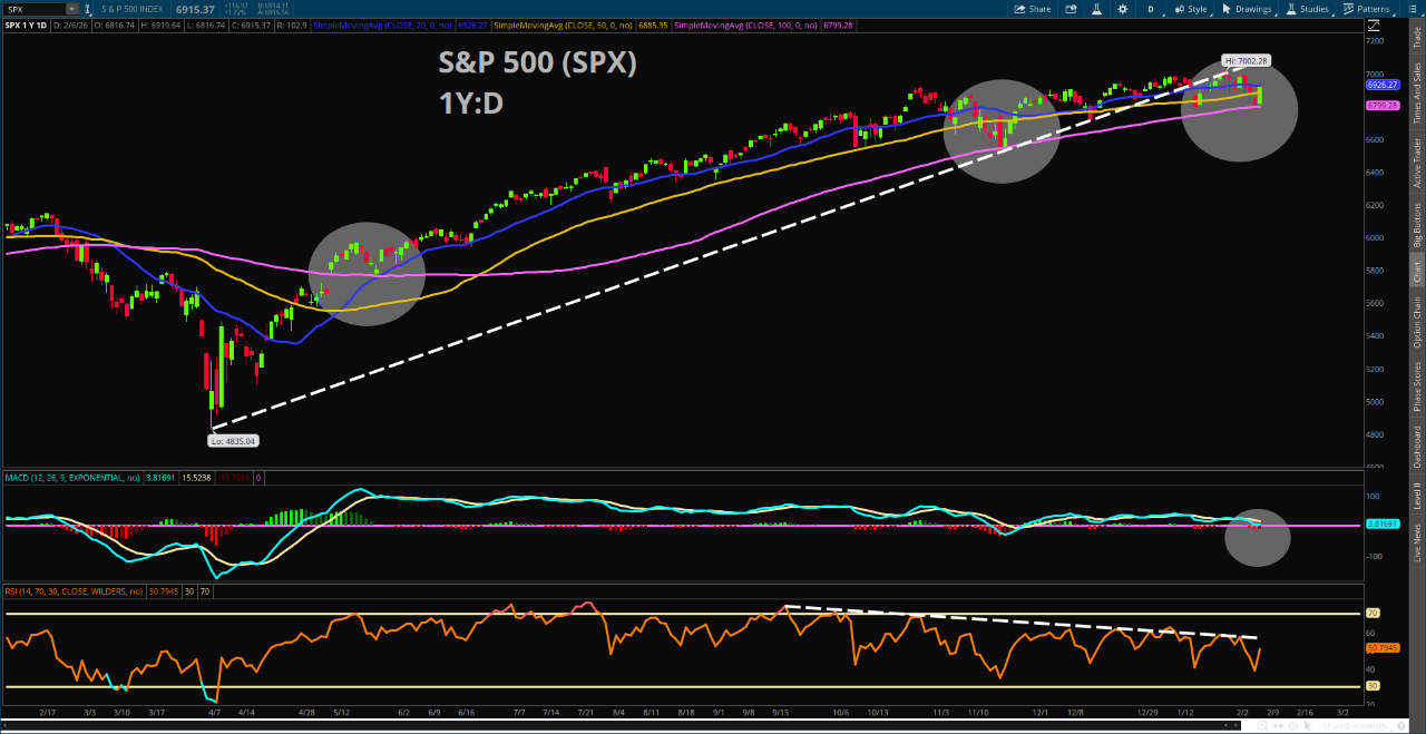 Markets staged a sharp bounce on Friday after enduring selling pressure for most of the week. From a technical standpoint, a rebound appeared likely—which we will discuss—but the bigger picture suggests that a significant amount of “froth,” or underlying damage, has already been removed from the market, even though the major indexes remain relatively close to all-time highs. The “rotation” trade has been in effect for the past two months, but we have now entered what can be described as the rolling market correction phase.
